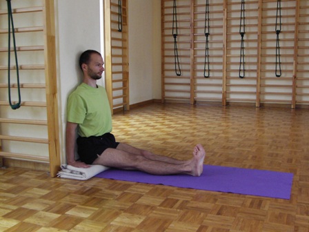 Jest to jedna z podstawowych pozycji siedzących. Z niej zaczynamy wygięcia do przodu oraz skręty. Ta łatwa pozycja jest dla wielu osób trudna, ponieważ zbyt często siadamy na krześle i właśnie dlatego jest dla takich osób bardzo dobra. Fot.1.
