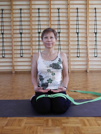 2. Gdy w pozycji bolą cię kolana, to włóż liny z tyłów kolan. Powinny one być maksymalnie wsunięte. Jeśli boli cię jedno kolano liny powinny być w obu kolanach, aby pracować symetrycznie. Gdy po włożeniu lin ból jest mniejszy, to możesz pozostać w pozycji. Jeśli nie, to usiądź wyżej np. na wałku, klocku lub kocu. Jeśli ból się nie zmienia, to nie rób virasany. Wykonuj inne pozycje siedzące, pozycje stojące aż kolana się wzmocnią i wtedy spróbuj znowu zrobić wojownika.